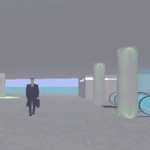 Untergeschossebene ab, in der er sich nur mit Hilfe von Schildern